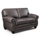 Feel right at home when you relax in this top-grain leather stationary loveseat. The smooth, blown, semi-attached square back is banded and corded with the added comfort of a baffled bag in the back. The smooth, rolled arms flow into the stepped-in back where they converge with the contoured and padded lower arms. The front of the arms are covered with face caps that are accented with brass tacks for a distinguished look. Comfort is not sacrificed by style as the cushion features encased coil springs giving a resilient, yet plush feel. Make it yours by choosing from our top-grain leather choices. Complete your look with the matching sofa and club chair.