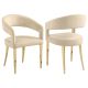 Change the aesthetics of your modern dining room with a refined set of two dining chairs. They're designed with a rounded back and sloping arms with a floating look, creating a sense of open, airy ambiance. The chairs are padded with foam, ensuring excellent comfort, and covered in neutral upholstery for a versatile look that complements in a variety of settings. Champagne finish legs complete the look with gleaming contrast and dimension, perfect for a sophisticated kitchen or dining room. Legs include levelers and glides for smooth performance.