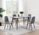 Bring approachable contemporary style to your kitchen or dining room with this five-piece dining set. It centers on a rectangular table that pairs tapering, splayed metal tube legs with a marbled look to its table top. The grey and sandy black combination is enhanced with matching side chairs. Each boasts a grey bucket-style seat for comfortable seating. This modern set offers a light, airy ambiance, perfect for an eat-in kitchen or breakfast nook.