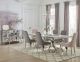 Elevate your dining experience with our 7-piece dining set. The elegant dining table features an expansive opaque white tempered glass surface. Its stainless steel trestle base, adorned with gleaming chrome-finish ring-shaped end supports, adds a sophisticated touch. Complementing the table's opulence, our upholstered side chairs boast soft velvet upholstery and polished chrome legs, blending luxury with comfort. Crafted from stainless steel, these chairs promise durability and opulence. The set includes six expertly cushioned dining chairs, in refined hues, adding curves and excellence. Transform your space into a haven of sophistication, where every meal becomes a lavish experience.