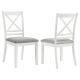 From its neutral palette to its charming details, this modern farmhouse side chair sets the tone in your kitchen or dining room. It shows off a classic stance, with sturdy construction that stands up to daily meals with the family. The chair features a crisp white finish over clean lines, with a charming X-cross detail decorating the seat back. Soft light gray upholstery covers foam cushioning on the seat, offering utmost comfort. Casual and inviting, it's an ideal choice for a welcoming dining table to break bread with friends and family.