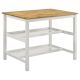 Add easy prep space in your kitchen with this modern farmhouse kitchen island. It features a warm brown wood finish tabletop with plenty of variation for an inviting look and feel. The base of the table features a metal frame with a white finish that's crisp and clean. Two shelves are built into the bottom of the table, offering a perfect spot for prep and serve ware like bowls, vases, and more. Add stools (not included) to create seating.