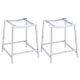 Pull up a stool and enjoy a casual modern entertaining experience from the privacy of your home. This set of two counter-height stools reflects ultra-contemporary design standards using crisp modern materials. Gleaming chrome finish metal framing includes a two-bar seat support and built-in footrests. A gently curved seat made of acrylic reveals the nuts and bolts of metal framing. Add this stool set to a sleek kitchen island or lounge space.