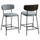 Introduce comfort and style with a set of two contemporary counter stools for your kitchen. Each features a black finish metal frame, offering streamlined character with slim structure and geometric details. Light, neutral upholstery covers foam cushions, creating excellent comfort for everything from meals with the family to cocktails with friends. Each stool features a built-in footrest for added support. Curved backrests add a dark oak finish panel, delivering the perfect hint of dimension and texture.