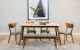 Dabble in a version of Swedish-Euro style to embellish your casual dining space, choosing this chic dining set. With a faux marble rectangular tabletop, its glam factor raises a bit and draws attention. Tapered, rounded legs made of natural walnut finish wood coordinate with charmingly angled chair frames that include a sleek rounded back. Upholstery softens each chair and a space-expanding bench. Set includes a dining table, six armless side chairs, and a versatile dining bench.