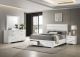 Transform your bedroom into a modern oasis with this sleek bedroom set, blending contemporary design with practical functionality. Anchored by a stunning upholstered bed wrapped in white faux leather, the set exudes a minimalist aesthetic complemented by clean lines and high-gloss finishes. Spacious case pieces, including a nightstand, dresser, dresser mirror, and optional chest, feature polished chrome accents and smooth drawer glides for effortless operation. Perfect for bedrooms of any size, this set offers both style and storage for a refined and organized space.