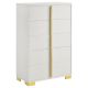 Minimalism never looked so elegant as it does in this elegant five-drawer chest, an excellent option for your updated bedroom ensemble. Modern design details produce a chic vertical chest with an Art Deco vibe and tons of storage space. Made of wood products, this five-drawer chest features a versatile finish with accenting from gold finish metal, placed carefully to emphasize a geometric linear effect. Store incidentals and accessories in drawers operating smoothly on center metal glides. English dovetail drawer construction embellishes this chest’s quality, as vertical gold metal drawer hardware offers a unique impact.