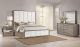 Approachable style infused a modern four-piece bedroom set that centers on a striking upholstered bed. In cream with grid style tufting, the bed presents with a tall headboard and low footboard, creating an open, airy look and feel. A eight-drawer dresser includes a framed mirror, creating a stylish and functional top perfect for everything from morning rituals to decor that adds personality. The set adds a two-drawer nightstand with a shelf, creating ample space for personal items, decor, and a reading lamp at your bedside. The set is complete with taupe oak wood finish that's soft and neutral to complement a wide variety of linen and decor choices.