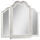 Your Evangeline collection vanity simply is not complete without this matching tri-fold mirror. Giving a great view from every angle, it's a necessity when creating gorgeous hairstyles and makeup looks, with side mirrors easy to position at just the right angle. The mirror is a shapely creation, offering romantic glamour in your dressing area or bedroom. Sparkling diamond-like trim highlights the center mirror, while beveled glass creates dimension and depth. A soft silver finish is a perfect match for the vanity desk, delivering sophisticated style for every occasion.