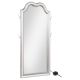 Chic couture style is a featured element of a lighted LED floor mirror well suited to fashionable living spaces. The Evangeline floor mirror offers a shapely silhouette with an arch top and rectangular profile. Its pine wood frame offers a silver oak finish, delightful and decadent. Side hangers add convenience, and LED lighting on its mirrored section is both mood-inducing and functional. A floor switch operates this glam-inspired mirror.