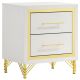 Gleaming gold trim captures attention on a modern two-drawer nightstand. Perfect for your sophisticated bedside, it boasts a bright white finish case that offers the perfect touch of depth with its gold trim. A pair of long bar pulls decorate drawer fronts. Hairpin style legs offer vintage flair and exceptional elegance....