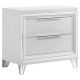 Complete your bedroom ensemble with this elegant 2-drawer nightstand, designed with a modern Italian aesthetic. The white finish, accented with mirror framing and polished chrome metal hardware, creates a striking look. Featuring picture framed recessed panels with an embossed herringbone graphic pattern, this nightstand offers both style and functionality. The top drawer includes cord management access, making it perfect for your rechargeable devices. Crafted from Asian hardwood, MDF, and mirror, this nightstand is a luxurious addition to any bedroom.