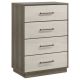 Enhance your bedroom with the elegant functionality of this four-drawer chest, designed to offer ample storage space while adding a touch of contemporary style. The sleek two-tone melamine finish blends natural wood tones, creating a modern aesthetic that complements any decor. Each drawer features smooth metal extension glides and antique nickel handles, ensuring easy access and a touch of vintage charm. The floating base design provides stability and a chic appearance, making this chest both practical and stylish. Crafted from durable melamine, particle board, and MDF, this chest is built to last, offering both beauty and functionality to your home.