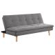 Create maximum flexibility in your space with a modern sofa that folds flat to create a bed when guests spend the night. The sofa is a minimalist design complete with an armless silhouette. It's upholstered in a medium gray, offering chic style in a den or home office. Its foam cushions is gently tufted to add depth and texture. The sofa rests on tapered, splayed legs with a natural wood finish, adding a light, airy final touch.