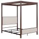 Transform your bedroom with this modern canopy bed that combines industrial strength with elegant design. Constructed entirely from sturdy metal, the frame is finished in a rich rust brown that highlights its contemporary appeal. Upholstered panels on the headboard and footboard are wrapped in soft beige fabric, providing a comfortable contrast to the robust frame. The vertical grooves along the posts add a textured touch, while the open canopy design creates an airy and spacious feel. This bed offers the perfect balance of durability and style, making it an ideal centerpiece for any modern bedroom.