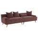 Create the ultimate spot for relaxation and comfortable lounging with a mid-century modern, extra-long, boxy low-profile sectional sofa. Upholstered in a soft wine red thin pinstripe corduroy, this sofa offers an appealing texture and plush comfort with foam cushions that provide impressive support, whether you're catching up with a friend or binging a new show. Wide, curved arms encourage you to curl up, while its appealing depth is ideal for cuddling. The sofa includes multiple accent pillows with premium down-like fill for lasting comfort, all in matching fabric to create a fresh, coordinated look and feel in your living room. Solid tapered wood feet in a beige finish are splayed for a vintage touch of character and offer height for an airy look in a modern space.