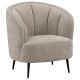 Show off your curve appeal with a modern upholstered accent chair, a great piece to float in the center of a room for an attractive focal point. The soft beige upholstery, with its velvety texture and extra wide channel details frame, creates a refined but inviting ambiance. Plush foam cushions provide welcome comfort, enhanced by premium filled accent pillows featuring a wide corduroy stripe and plum textured boucle. This chair, perfect for a compact conversation group or a larger living space, boasts vertical tufting that adds depth and detail, creating a shell effect on a rounded barrel back. The design is complete with stylish tapered black powder coated metal legs, adding the perfect hint of contrast and depth.