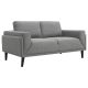 Unveiling our modern loveseat, where innovation meets elegance in a frame within a frame design. Adorned in a chic fabric, its streamlined silhouette is highlighted by meticulous topstitch details and track arms complemented by mitered front accents. Prioritizing comfort, the sofa comes with reversible back cushions and pocket coil seat construction, ensuring a snug and supportive seating experience. Anchored by tall, black cylinder-shaped wooden legs, this sofa stands as a blend of style and function, ready to be the centerpiece in any contemporary living space.