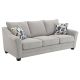 Create comfortable seating while embracing style with this well-tailored sofa collection. Upholstered in a textured, multidimensional gray boucle fabric, it's perfect for camouflaging wear and offers impressive texture and dimension in your living room. The sofa features sloped arms, boxed seat cushions, and tall back pillows, all finished with welt trim, offering wonderful comfort and support for seating and lounging. A classic silhouette is updated with gently sloping, flared armrests, creating a fresh, inviting profile. The design is completed with tall, tapering block legs in a dark finish, providing a sturdy foundation and completing the look.