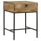 This end table pairs rustic charm with modern functionality. Crafted from solid mango wood in a honey brown finish, it offers a warm, inviting touch to any space. The drop-front door reveals a slim shelf for storing essentials, enhanced by chain accents for added detail. Supported by a sleek iron base with a black finish, the table combines mixed media appeal and sturdy support. A minimalist black knob complements its design, making it a perfect addition beside a sofa or bed.