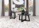 This coffee table set features a black marble-like top and sturdy solid rubberwood bases in a bold black finish. The high-pressure laminate surface offers the elegance of natural stone with exceptional durability and easy maintenance. The sleek, modern design of these occasional tables blends clean lines and sculptural bases, making them a perfect addition to contemporary living rooms. This set provides both style and functionality, serving as an elegant focal point for your space.