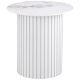 This round end table features a sophisticated sintered stone top with natural veining for a modern and luxurious touch. The sturdy metal base, with its fluted design and white powder-coated finish, delivers both stability and sleek aesthetics. Compact yet impactful, this versatile piece complements a variety of living spaces, offering style and functionality. Designed for everyday use, it seamlessly combines durability with refined design for contemporary interiors.