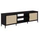 Elevate your entertainment area with this sleek 70-inch TV stand, perfect for accommodating up to a 75-inch TV. The modern design features two door cabinets with stylish radio weave polyethylene (PE) rattan fronts, adding a touch of natural texture to your space. Constructed with a durable metal frame and finished with a sleek powder coating, this stand offers both form and function. Two open-back shelves provide convenient space for devices, ensuring easy cable management and accessibility. With its contemporary appeal and thoughtful design, this TV stand enhances both the style and functionality of your living room.