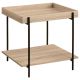 Infuse your space with the contemporary casual vibes of a modern end table, constructed from metal and engineered wood. This charming choice offers a tray-like table top that creates a sense of depth and dimension, perfect for refreshments or a decorative display. Its natural wood-like features are highlighted by a light brown wood grain finish, clean and timeless, lending itself well to a variety of spaces and surrounding decor choices. The side table features a slim, black finish metal frame that creates structure, enhancing its modern appeal. It includes a full lower shelf, providing convenient storage or display space for books or personal items.