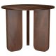 Instill an organic sense of artistry in your living space with this beautifully crafted end table. Made from solid mango wood, it features a deep brown finish that highlights the natural wood grain for added character. The round tabletop provides a stylish surface for decor or daily essentials, while the unique base design enhances its visual appeal. Three inwardly angled slab legs with rounded corners offer stability and a modern, sculptural look, making this side table a functional and artistic addition.