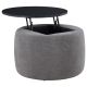 Indulge in the seamless blend of functionality and style with this chic round ottoman. Draped in sumptuously soft grey chenille, it invites relaxation while concealing a spacious storage compartment beneath its sleek black lift-top. Its subtle charm is elevated by the contrast of textures, offering an understated yet sophisticated accent to any living space. Perfect for small spaces, this ottoman combines the comfort of additional seating with the practicality of hidden storage. Envision this versatile piece as the focal point in your room, where convenience meets modern elegance.
