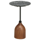 A compact profile makes maximum impact with impeccable design and luxurious materials. A contemporary side table is perfect for drinks, complete with a round top that acquits itself wonderfully in your living room. The top is made from beautiful black marble with distinctive veining that offers organic elegance and earthy character to sleek surrounding decor. The base is an inverted goblet, complete with a slim metal stem and warm brown mango wood cup that offers stability and artisan character. The intriguing combination of metal, stone and wood adds depth and dimension to a chic silhouette that finds a home in contemporary or modern farmhouse design.