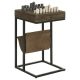 An iconic game with legendary roots folds into the design of this accent table, a perfect choice for adding function as well as entertainment to your living room or game room. Chess is the name of the game as this wood, iron, and leatherette table serves as a side piece with multi-functionality. A carved-in chess board graces the surface of the table’s rustic tobacco finished top unit, which includes a storage drawer to store included Terrazzo game pieces or incidentals. An iron frame offers a bold black finish and an openwork design, reflecting a casual yet tasteful design. Stash books and periodicals in a brown leatherette magazine holder mounted under the tabletop and turn this side table into a multi-purpose center for activity.