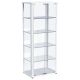 Gather all your favorite things and show them off to their best effect in a modern glass curio cabinet. Perfect for everything from China in the dining room to sculpture and art in your living area, the cabinet features rounded corners and a neutral finish, offering crisp style in any setting. Its glass sides and back are complemented with a pair of clear glass doors, offering a full view of items placed within. Four glass shelves hold an impressive number of treasures, creating a curated display you'll love. Recessed lighting completes the look to perfection.