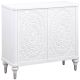Put the last touches on a stylish space with the added storage and impeccable style of a modern accent cabinet. Featuring two decorative magnetic push-to-open doors, it's the perfect addition in any space, offering ample interior space with an adjustable shelf. The top creates space for decor or to highlight beautiful artwork hung above. The cabinet boasts a crisp white finish, bringing light, refined character to a pair of floral medallion doors. Curvy legs feature silver-toned caps, adding a hint of contrast and dimensionality in any room.