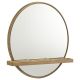Add a chic vanity mirror over a vanity desk or your dresser to create the ideal place to get ready for the day. The mirror features a round profile with a wooden frame and straight, horizontal shelf. Its sand finish is perfect to complement the wood grain look, offering coastal hues that bring neutral warmth. The mirror includes a jewelry tray that's perfectly sized for fragrance bottles and other cosmetics, keeping them close at hand without cluttering your table or dresser top. Even without a table below, this vanity mirror is a chic addition to your bedroom or dressing area.