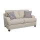 Take advantage of charming farmhouse influence that steers the design of this stylish loveseat. With tailored English arms and turned legs offering a contrasting espresso finish, this loveseat shines with a light grey linen-like upholstered cover. Two reversible cushions T-cushions create comfort and stay in shape, as a solid wood frame with a sinuous spring deck sets the stage for durability. Attached back cushions remain stationary to prevent shifting. Enjoy the designer look of two accent pillows with a houndstooth patterned cover.