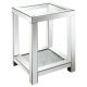 Add Hollywood Regency vibes to your decor with this glam mirrored end table. Featuring a tempered clear glass top and beveled mirror trim, it exudes modern flair and timeless elegance. The sparkling acrylic jewel-encrusted bottom shelf enhances its chic, refined design, while mirror tile accents bring a touch of luxury. Perfect for showcasing decor or holding essentials, this table offers a striking blend of style and practicality.