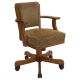 The exquisite comfort and pleasing design of this rolling chair is wonderfully appealing. With stylish sensibility, it's an ideal seating option for an office or recreation room. Its thick, plush seat is upholstered in soft, olive-brown fabric. A beautiful chestnut finish is a pleasing complement to its stately silhouette. Featuring sturdy arm and back supports, this chair is a stylish and practical choice for comfortable relaxation.