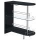 This stylish bar unit is a fabulous option for your entertaining needs. A sleek silhouette and glossy black finish give it a chic, modern appeal. Its tempered glass storage shelves offer a handy place to display a collection of fine wines and spirits. Protective guardrails help prevent accidental spills and keep bottles safe and secure. A handy stemware rack rounds out the versatile convenience of this contemporary bar unit.