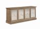 A four-door server is accentuated with antique mirror door fronts to create a rich, classic accent piece. Drawing the eye, this dining room addition is just the finishing touch you've been searching for. Plentiful storage creates space for various types of serveware and myriad accessories and linens. This buffet features Asian hardwood construction and a soft barley brown finish to offer a stylish, durable presentation. Add a matched pair of beautiful vases to its top, or leave it open to create an easy and accessible service space.
