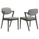 • Designed with a padded backrest and seat, each upholstered in a brown-toned grey fabric, this chair offers a place of rest at a dining table and beyond
