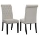 Blending timeless elegance with plush comfort, this side chair enhances any dining space. Its high backrest features a classic button-tufted design, adding depth and sophistication. A rolled top and hand-applied nailhead trim create refined detailing, while the generously padded seat ensures lasting comfort. Supported by sturdy, tapered legs, this chair is built for both beauty and durability. Whether part of a formal setting or an inviting everyday dining space, it brings grace and charm to the table.