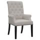 Designed for both luxury and support, this arm chair brings an elegant presence to any dining space. Its button-tufted high back and rolled top lend a timeless aesthetic, while the addition of padded armrests enhances comfort. Hand-applied nailhead trim offers a sophisticated finishing touch, complementing the chair’s tailored silhouette. A generously padded seat and sturdy legs ensure both durability and long-lasting comfort, making it a stunning choice for formal and everyday dining alike.