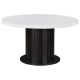 Transform a contemporary dining room with this modern, round dining table, designed with a lustrous, white, cultured marble, table top and a rustic espresso finished pedestal base for a contrasting look. Spacious enough to seat four people comfortably, this beautiful dining table features a 54-inch round table top of thick...