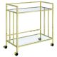 Welcome guests and serve up libations with this sleek contemporary bar cart. A rectangular silhouette outlined in a slim, square metal frame lends an Art Deco-inspired aesthetic to dining spaces and more. The polished, metallic finish elevates it even further, pushing the modern glam expression. Slide this luxe bar cart against a wall or glide it into the next room as you host parties, with the help of its lockable caster wheels. Two clear tempered glass shelves allow you to showcase your favorite bottles and barware.