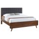 Bring countryside charm to your bedroom with this mid-century-inspired bed, expertly crafted from pine, engineered wood, and walnut veneer for durability and style. The upholstered headboard features thick padding and square tufting for a touch of elegance and comfort, while the sleek, low-profile footboard completes the...