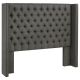 We love the cozy ambiance created with a demi-wing design in this modern upholstered headboard. Perfect for freshening up your bedroom, it offers a contemporary look with classic design details that bring intriguing richness. Dark gray upholstery is padded and button tufting, creating depth and dimensionality. Wings are lined with individually applied nail heads that showcase a warm bronze finish, offering the perfect touch of character. Pair with linens in a soothing color to create a refined, inviting presence in your bedroom.