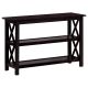 Bring an energizing look to a transitional space. With linear styling and geometric x-shapes on its side panels, this console table creates an eye-catching effect. Deep merlot offers a scrumptious, dramatic finish that blends well with surrounding furnishings. Find plenty of shelf space to match its rectangular surface....