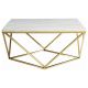 Enhance your living space with this modern square coffee table, featuring a striking white faux marble top and a geometric metal frame in a luxurious gold electroplated finish. The openwork design provides an airy yet bold aesthetic, perfect for contemporary interiors. This cocktail table delivers both style and functionality while requiring no assembly for immediate use. Ideal for creating a chic focal point in any living room setup.