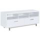 Ideal for a living room with contemporary decor, this TV console exudes updated style. The dazzling shine of chrome combines with a crisp, clean white finish for a pleasingly modern look. Its chic silhouette is complete with an elegant brushed silver frame, adding a pleasing touch of polish. Endlessly versatile, it features three open storage compartments and two large lower drawers to easily keep your space organized. For added depth and a more subdued look, this console is also available in deep, rich cappuccino.